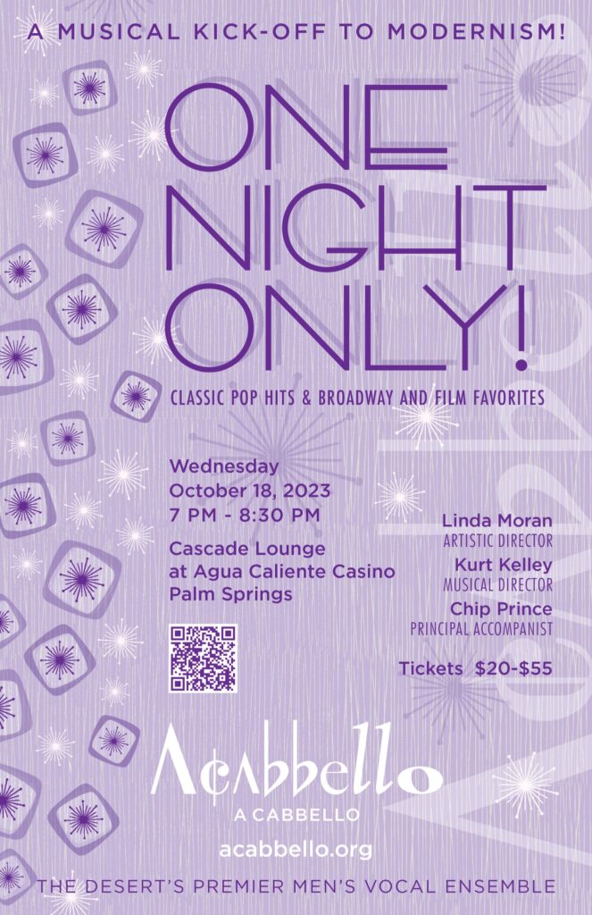 The Men of A Cabbello rocked the stage at the sold out Agua Caliente Cascade Lounge on the night of Wednesday October 18, 2023. This “Best of A Cabbello” show featured classic pop hits plus Broadway and film favorites presented as ensembles, duets and solos.